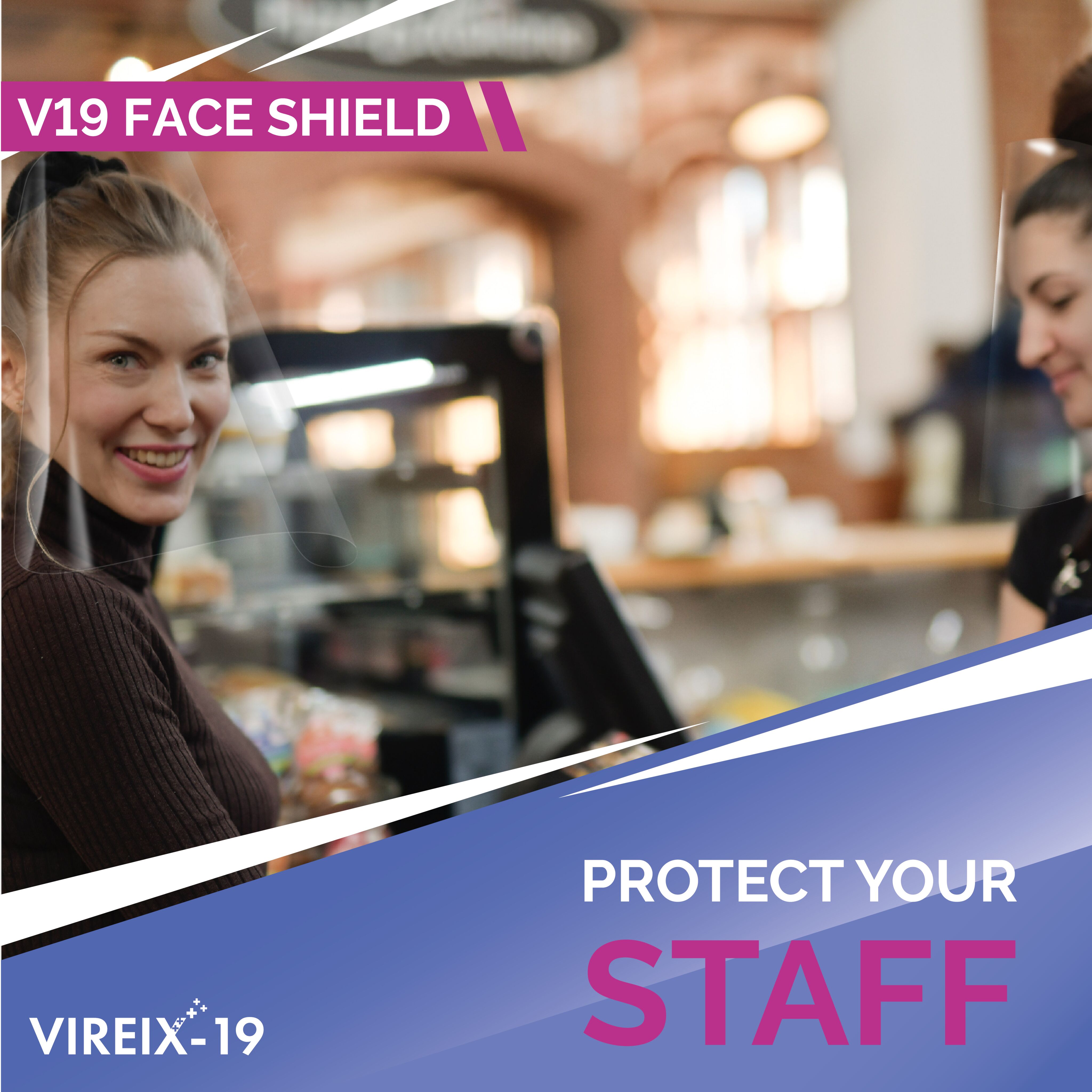What says welcoming hospitality quite like offering a V19 Face Shield to your Customers!